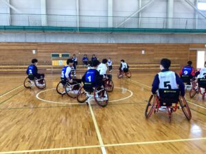 午後は身体を動かすことが中心。前半は加藤先生による車いすバスケとボッチャの体験。2つのパラスポーツを体験する事を通して、「チームワーク」や「仲間で成果を出す」ことの大切さを学びました。