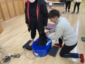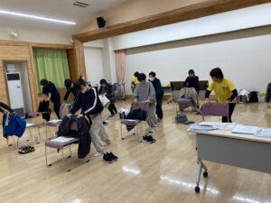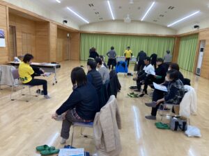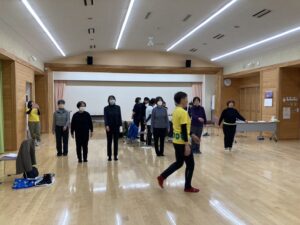 簡単なのに、みるみる足が温かくなり皆さん夢中に体を動かしました。