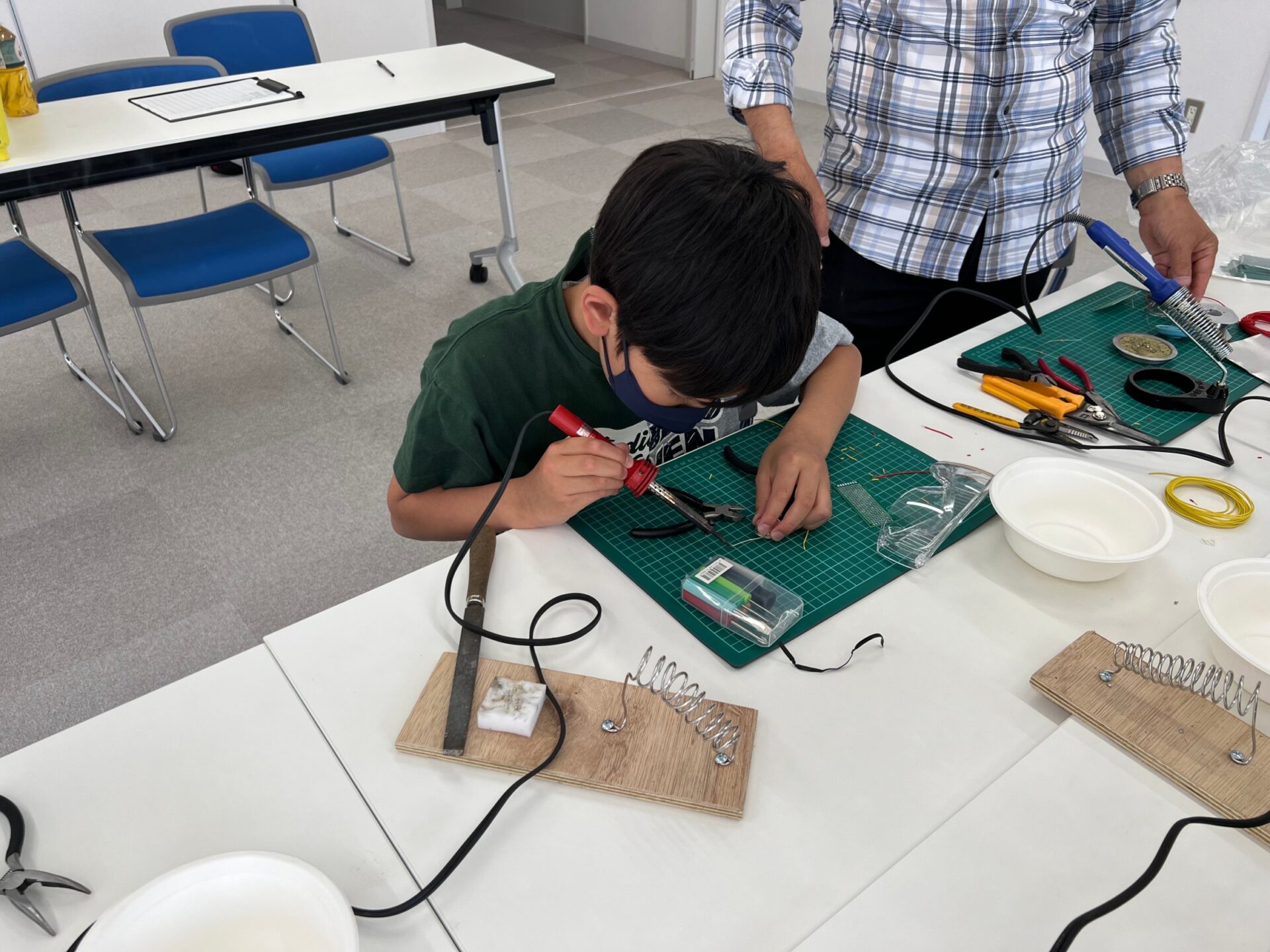 プロの電気博士から電気についての基礎知識を学び、工具の使い方も学びながら自分が使える製品を製作します。