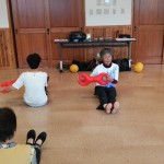 音楽に合わせて体を動かします!