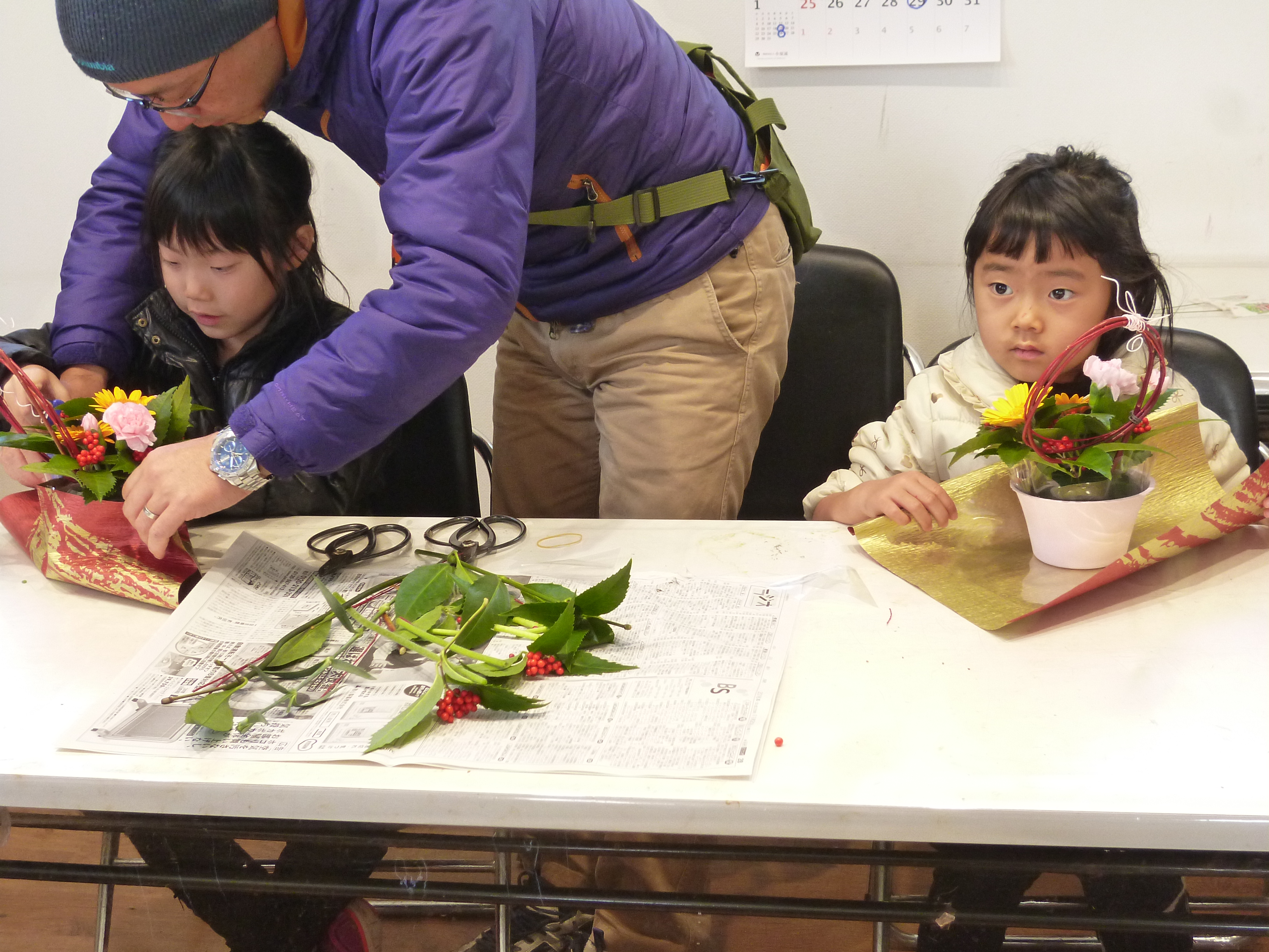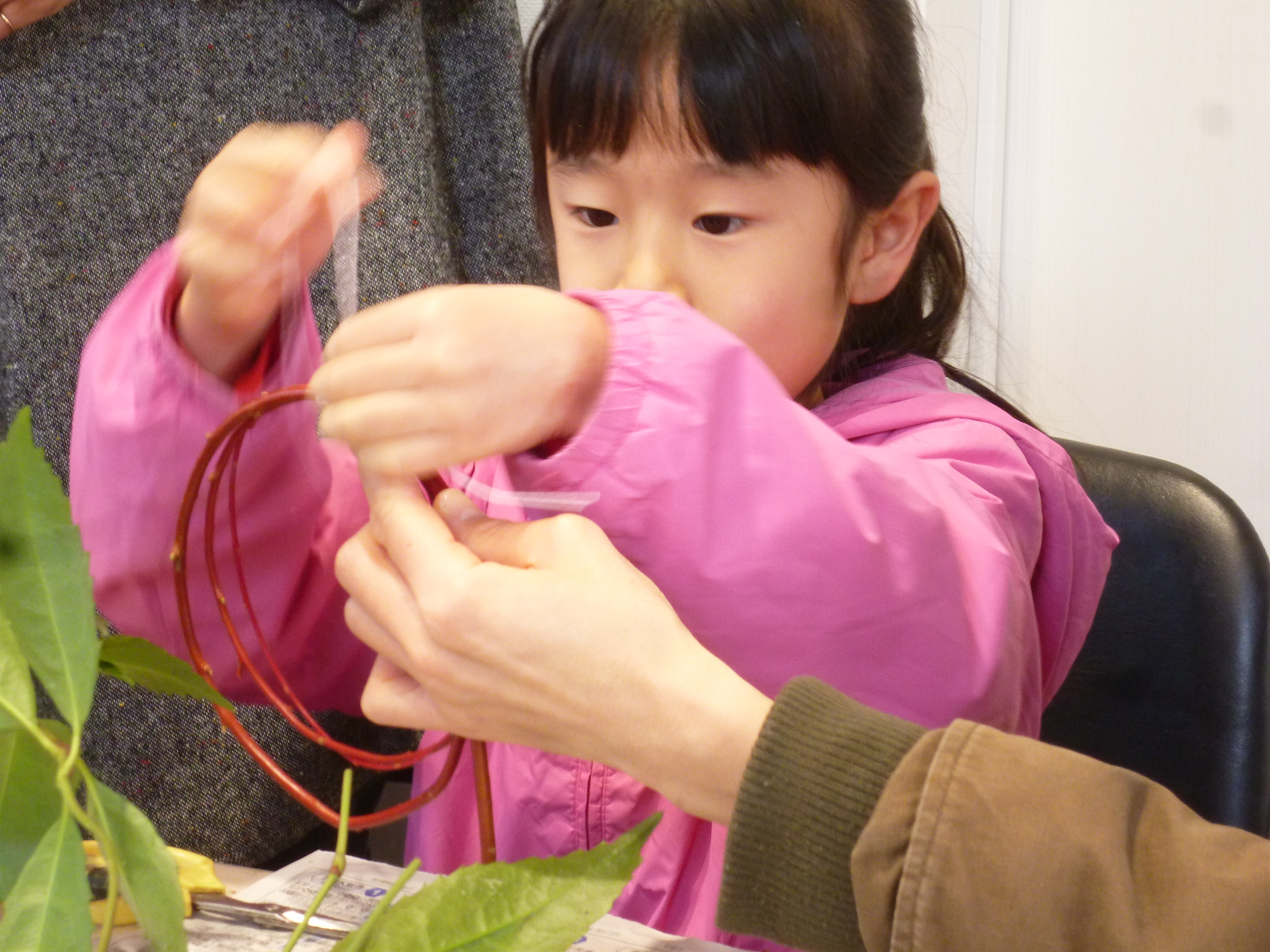 柳を丸める作業は、ちょっと手伝ってもらいながら楽しくお正月飾りが作れました。