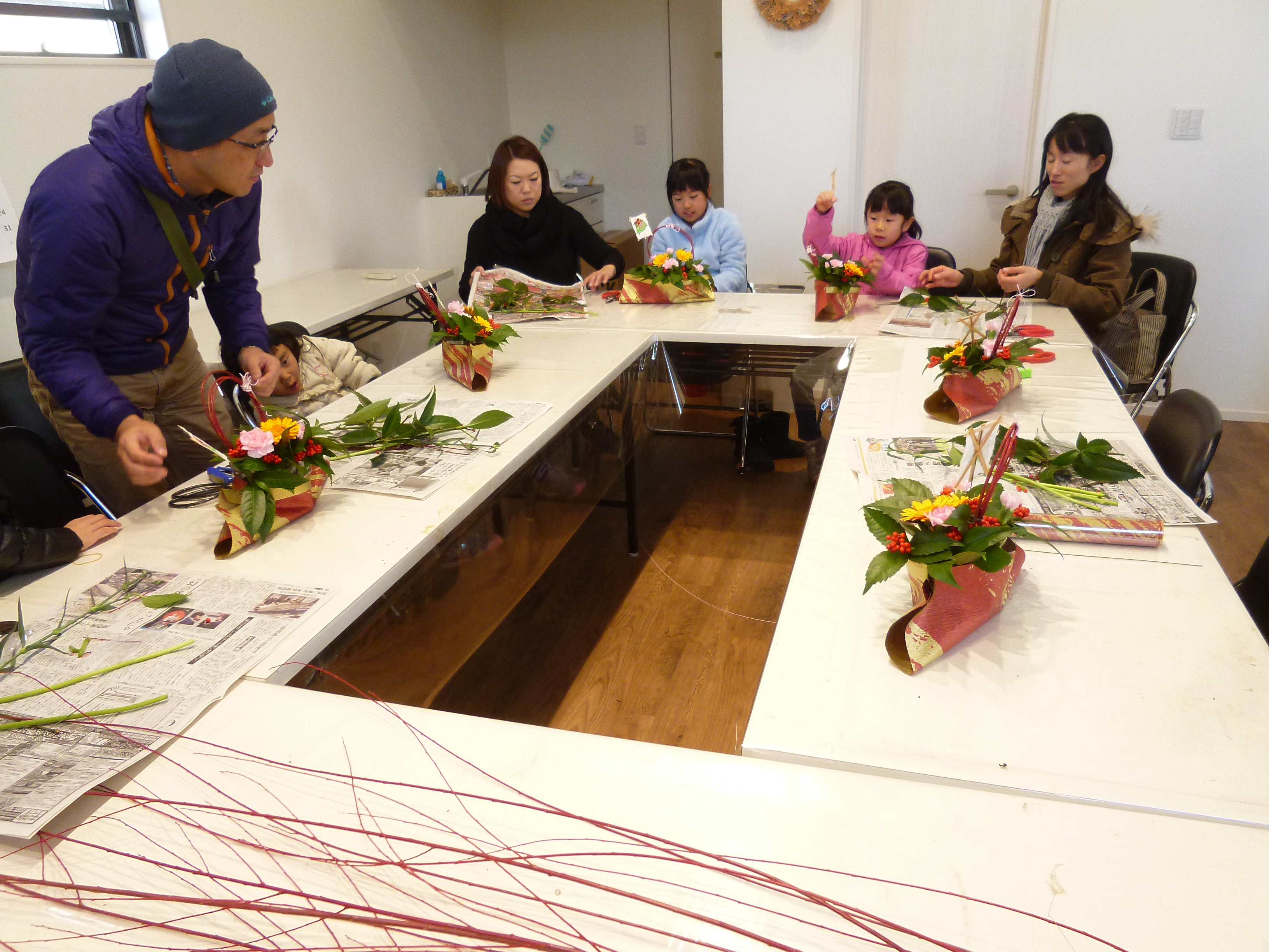 お正月までお花をもたせるには、オアシスに水を忘れずにあげて下さい。と 大事なポイントを先生に教わり