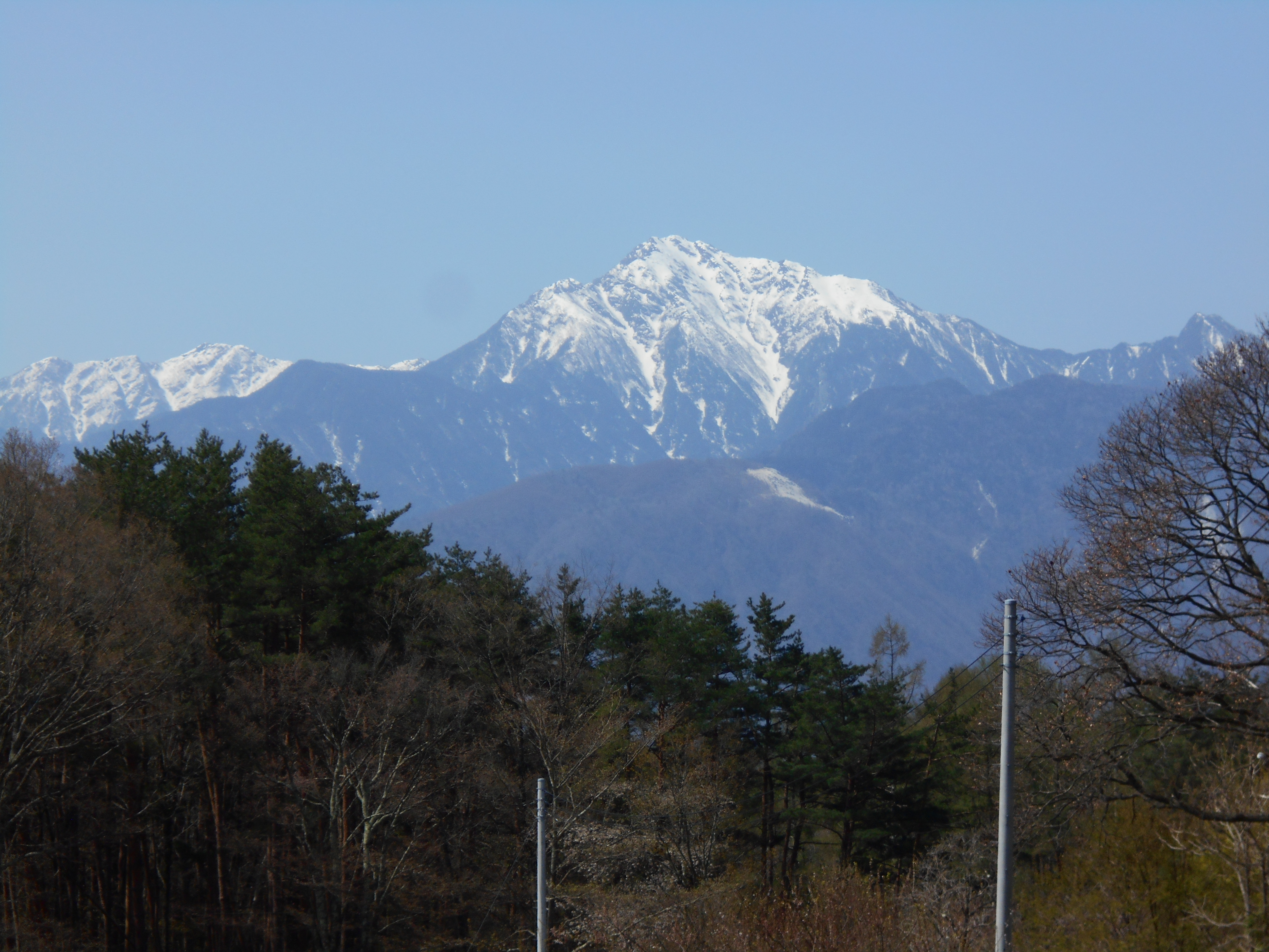 富士山、北岳(富士の次の高さ)東駒ケ岳が目前にあり、また、山桜がきれいに咲き誇っていたばかりでなく