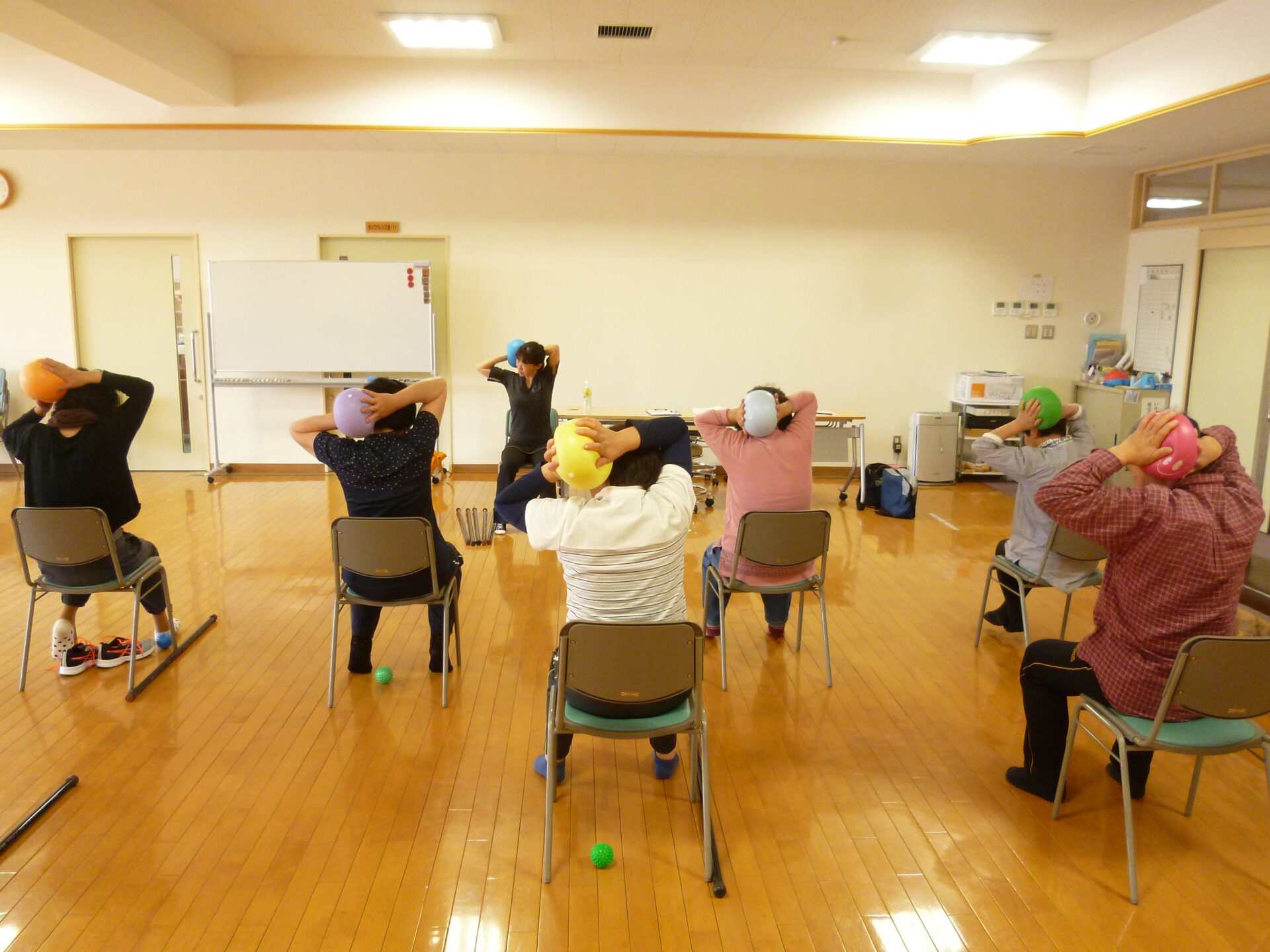 ボールを使って筋力を鍛えたりと