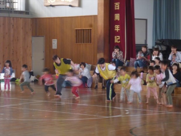 広い体育館の中を遊びを通してドキドキわくわくしながら体いっぱい動いていました。