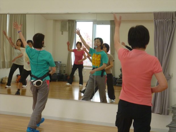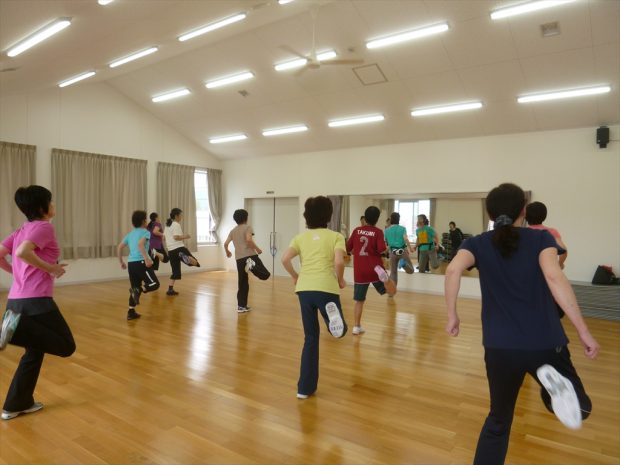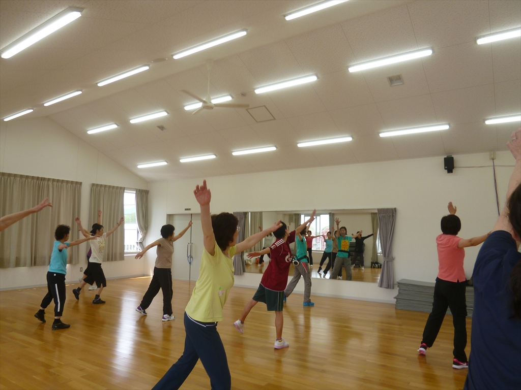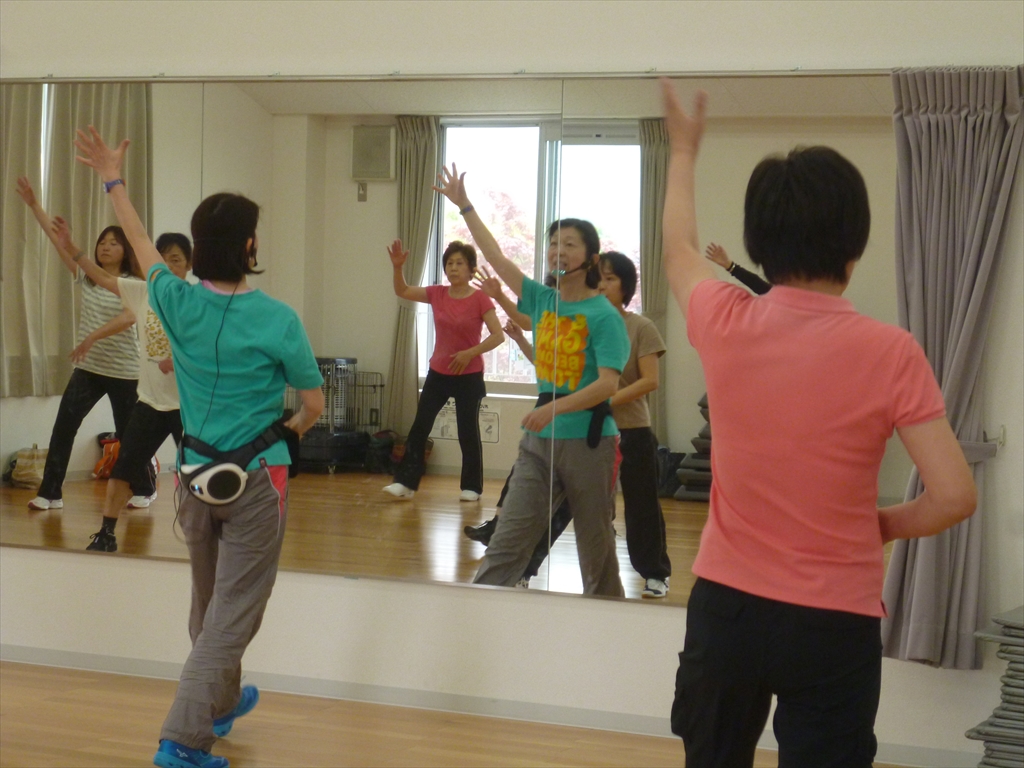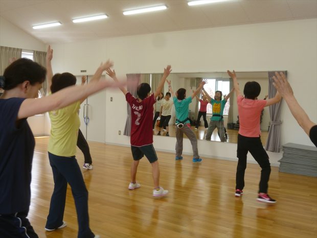 少し懐かしい音楽に合わせて、テンポよく体を動かしました。