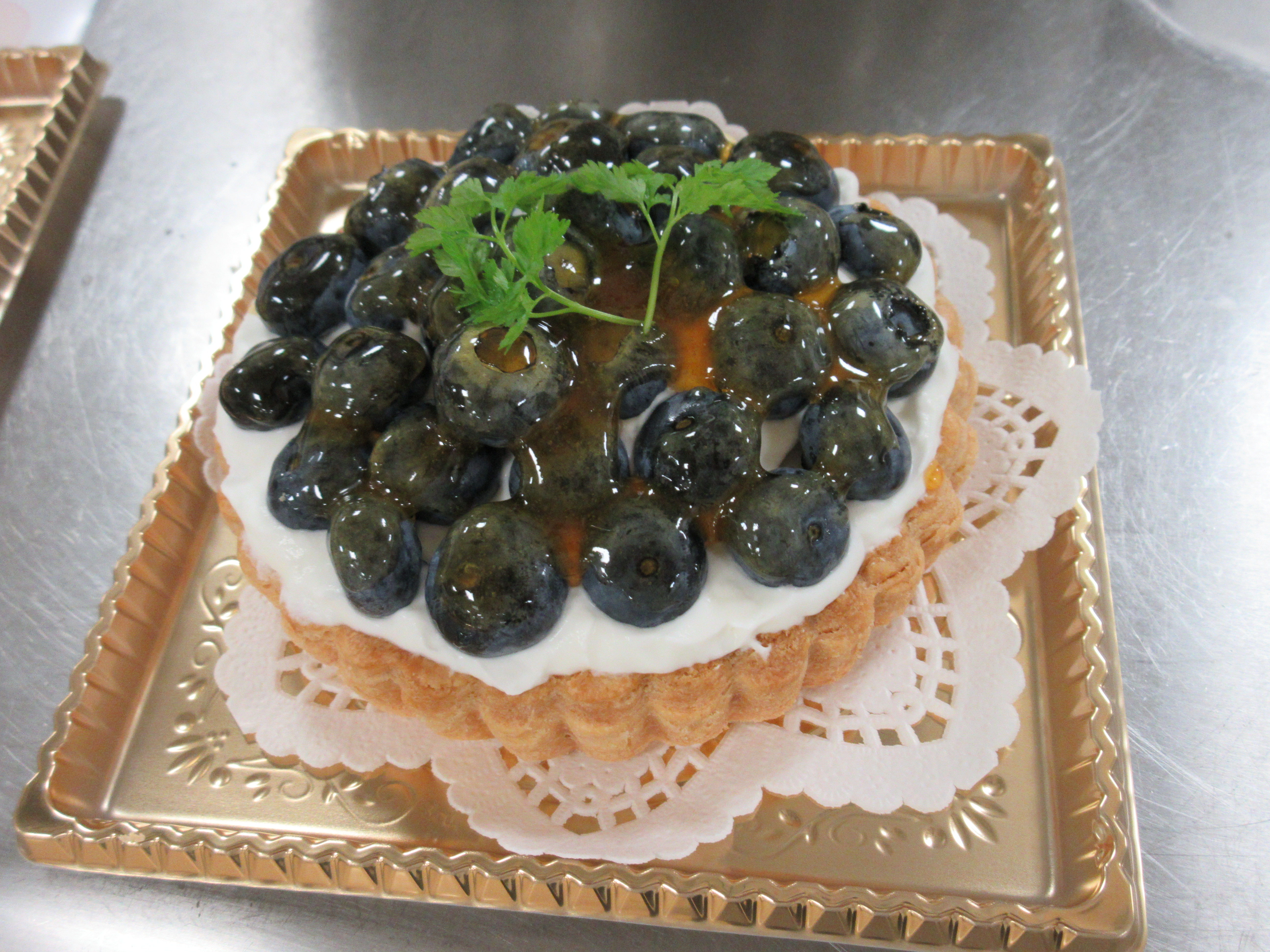 初回の今回は「タルト・オ・ミルティーユ」というブルーベリーのタルトと「アーモンド チュイール」という