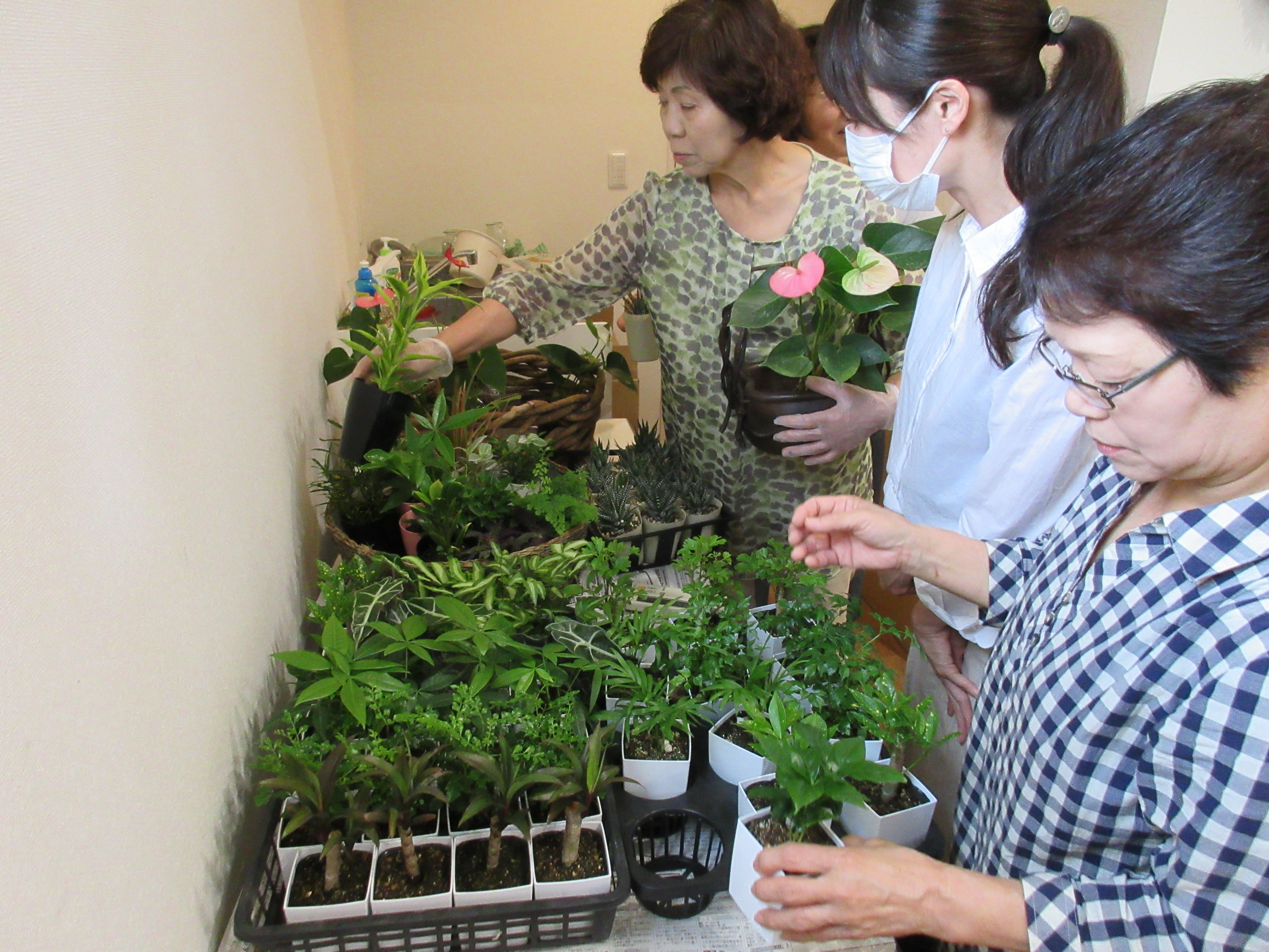 先生が アロカシア、ドラセナ、シルクジャスミンなどなど・・・