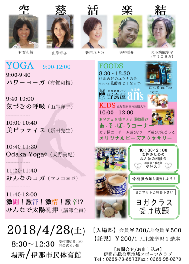 それと同じくして2018年4月28日 信州い~なスタイルヨガマルシェin伊那の受付も開始いたしました。