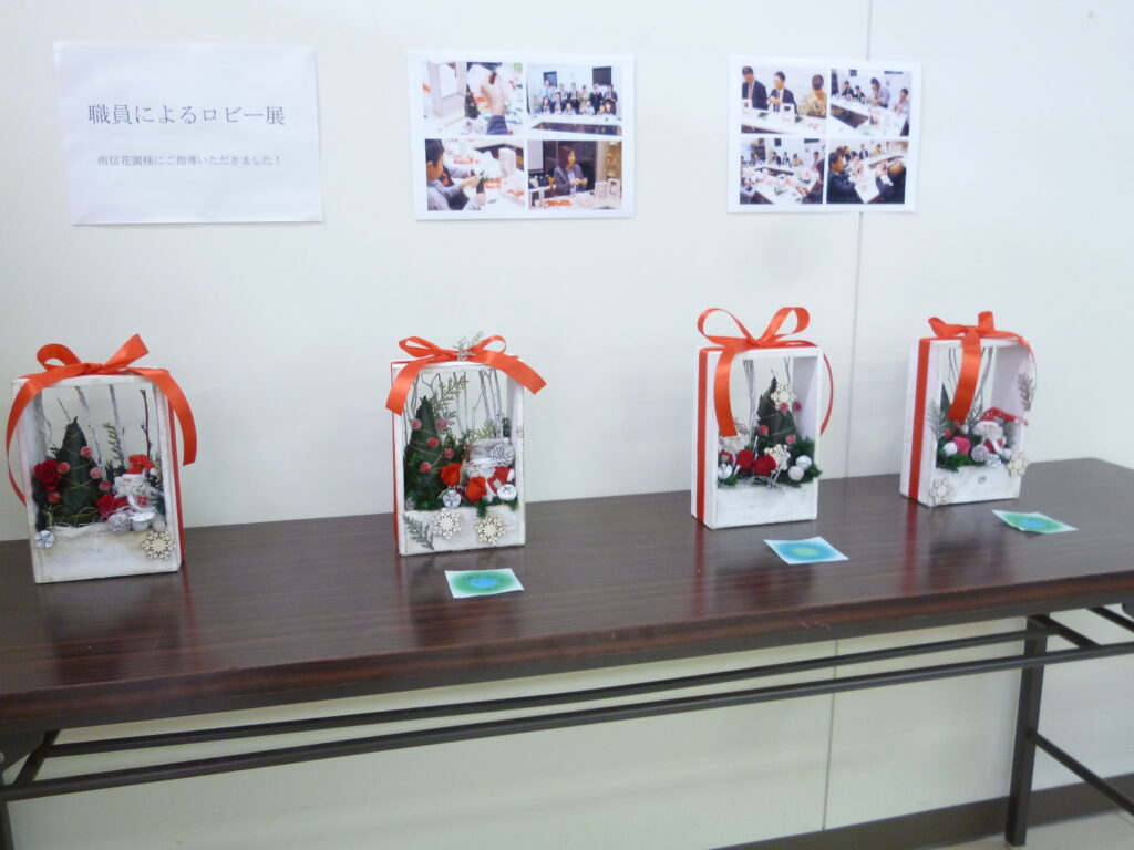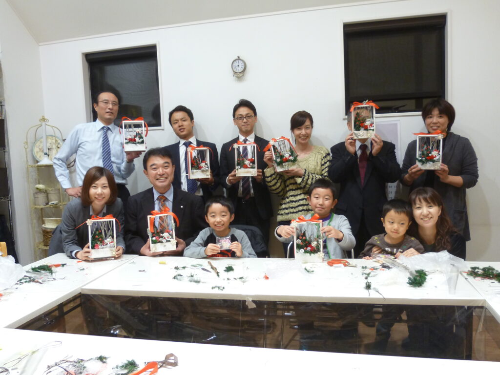11月2日(水)夜7:00から南信花園さん2Fにてクリスマスフラワーアレンジ講座を開きました。 支店長はじめ9名+お子さん3 ...