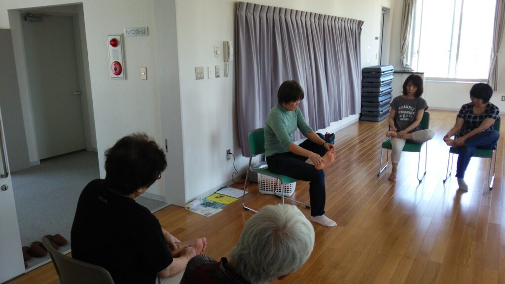 9月8日木曜日の13:00~ロコモ予防~骨・関節・筋肉元気!!講座が行われました。 準備体操で体をほぐした後、足を左右・前後 ...